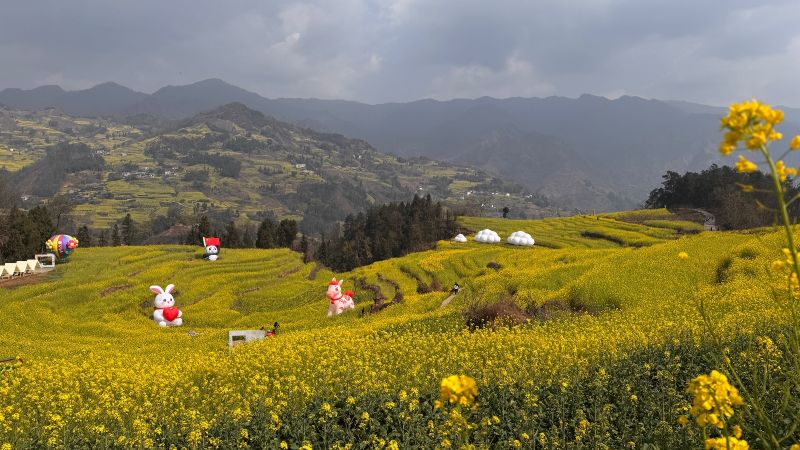 宜宾屏山县中都镇有川南地区最大,4万亩、几座山梯田油菜花海,当我们还在雾霾里瑟瑟过冬天时,宜宾屏山中都已经迎来了春天,花期从11月底初始,要持续到来年3月,实属全国最早的油菜花。每年1月底,中都山上的雪还没化完,山下的油菜花就已盛放成海,堪称川南自然景观一绝。