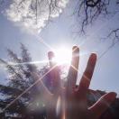 在雪山下透着阳光